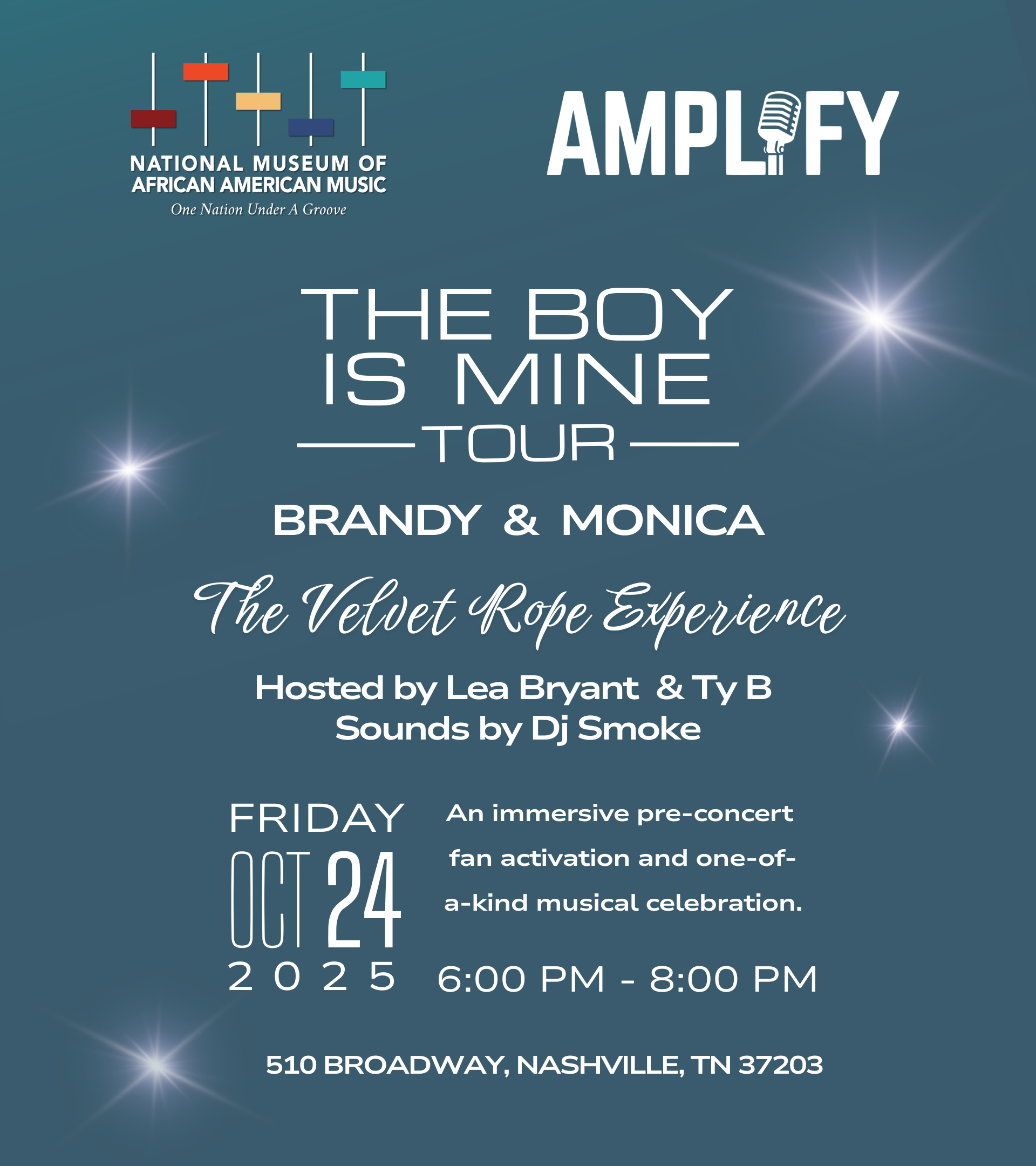 Step behind The Velvet Rope for an exclusive pre-concert celebration before Brandy and Monica's historic "The Boy is Mine" tour stop at Bridgestone Arena. This immersive VIP experience transforms NMAAM into an intimate musical lounge where R&B heritage meets contemporary culture.   Enjoy signature cocktails inspired by R&B classics while exploring curated artifact exhibitions celebrating […]