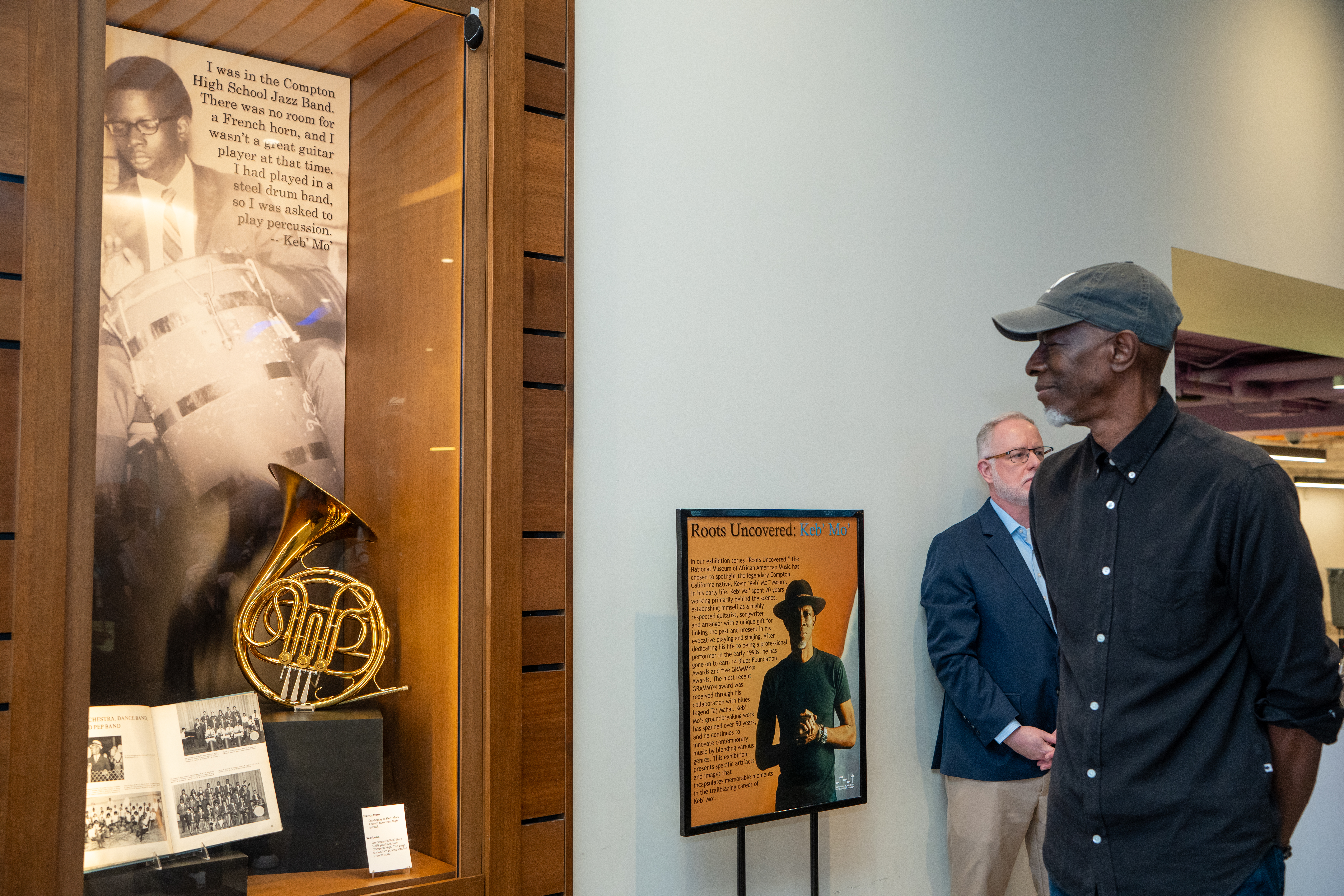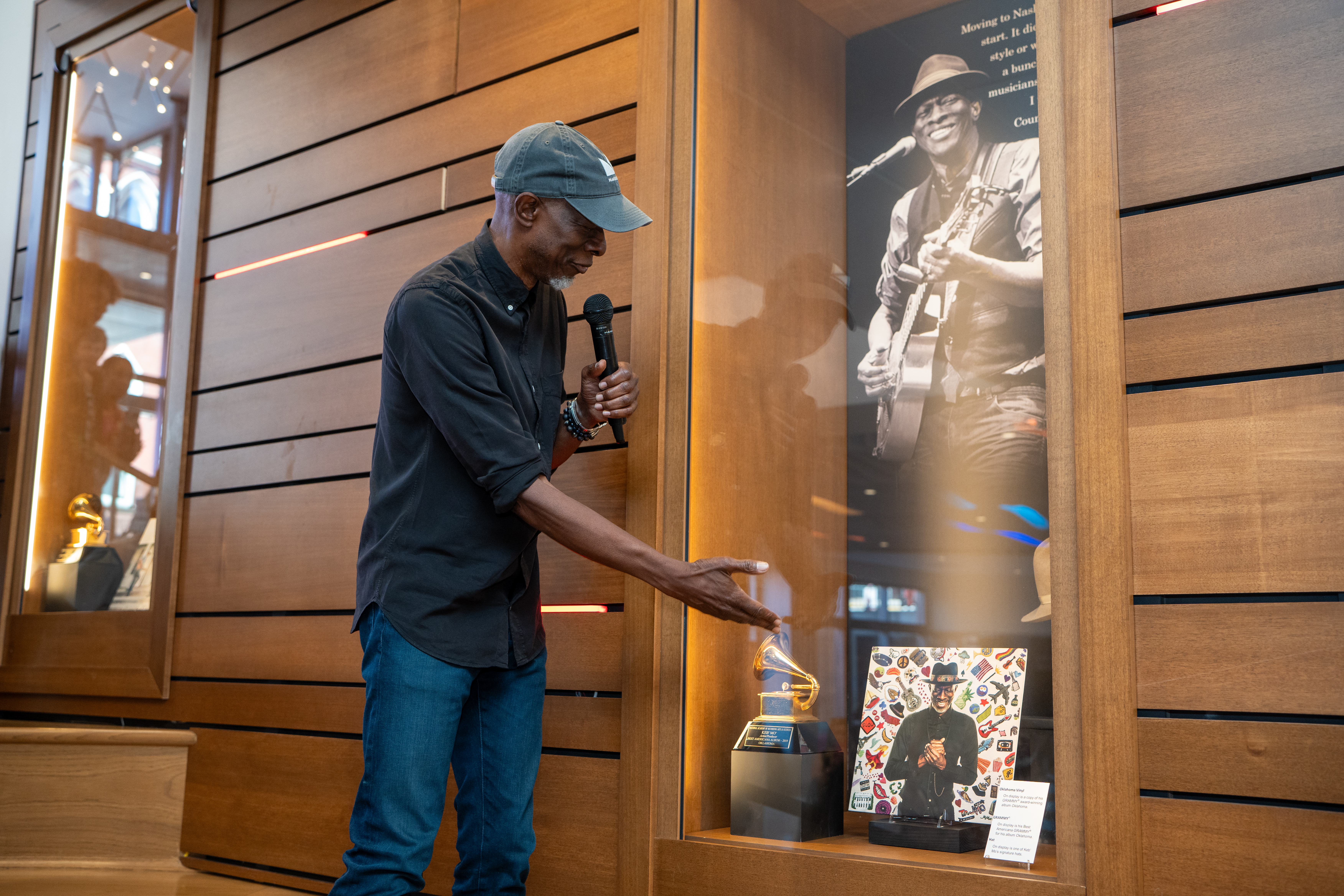 On September 13, 2025, during AmericanaFest, we unveiled Roots Uncovered: Keb’ Mo’ in our main lobby exhibition space. This special installation celebrates the five-time GRAMMY Award winner’s extraordinary 50-year journey, tracing his artistry from his early musical beginnings in Compton, California, to his Grammy-winning album Oklahoma.
