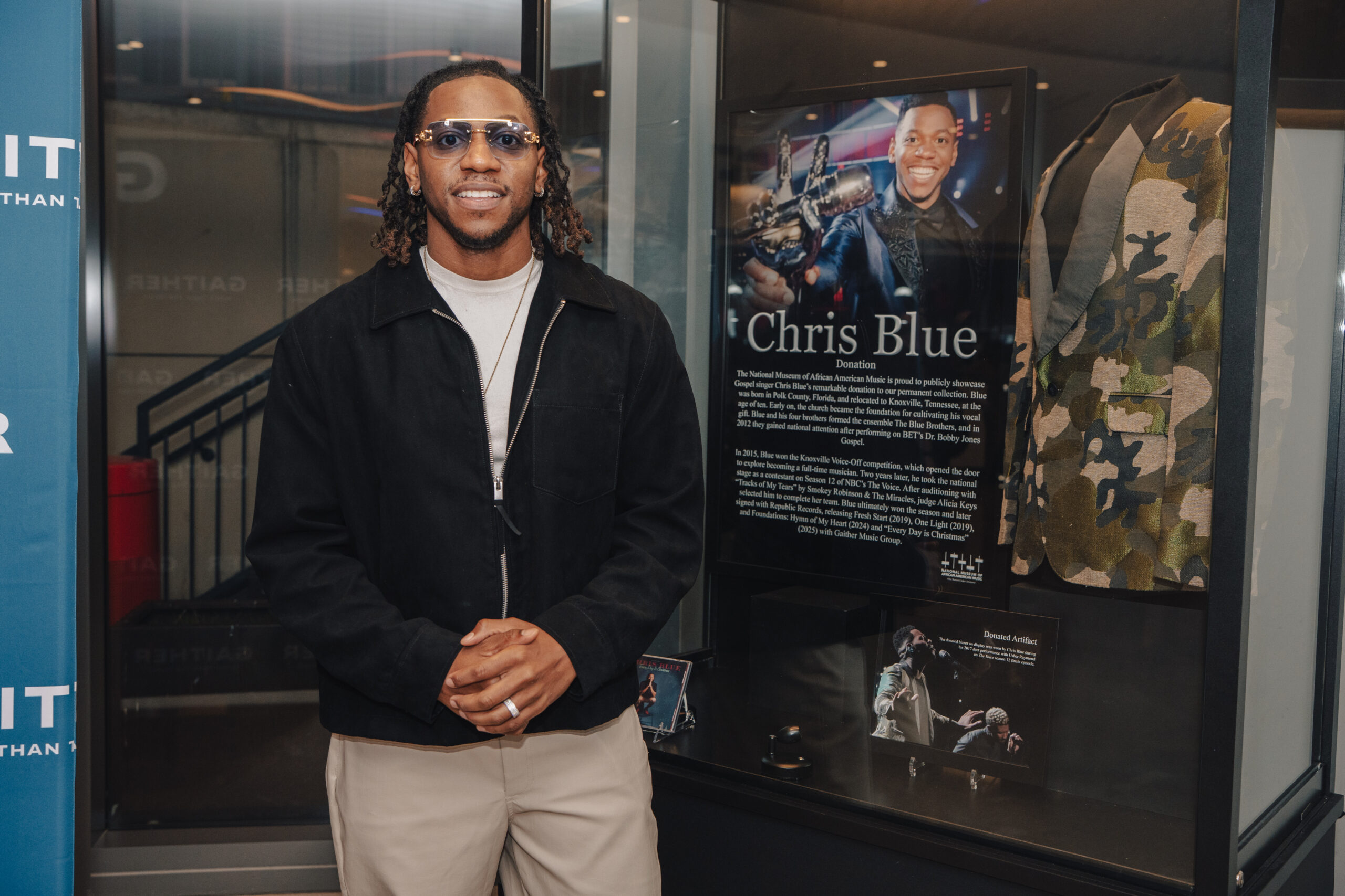 On December 3, 2025, DOVE Award-nominee Chris Blue donated artifacts from his historic 2017 Season 12 win on NBC’s The Voice to NMAAM’s permanent collection. Blue was the first African American winner since Season 2. The donation, made in partnership with Gaither Music Group, includes memorable items from his winning journey and celebrates his continued impact on gospel, R&B, and soul music.