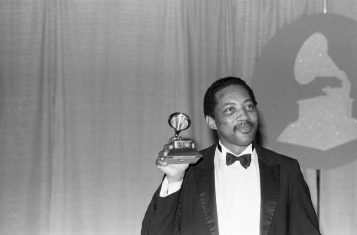 Bobby Jones poses with his GRAMMY award, 1984. (photo by Guy Crowder, Los Angeles Times)